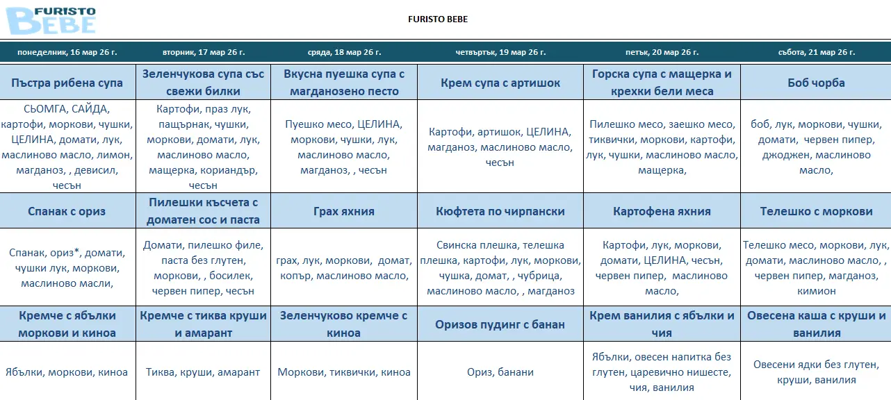 Furisto Bebe - Нашето месно меню