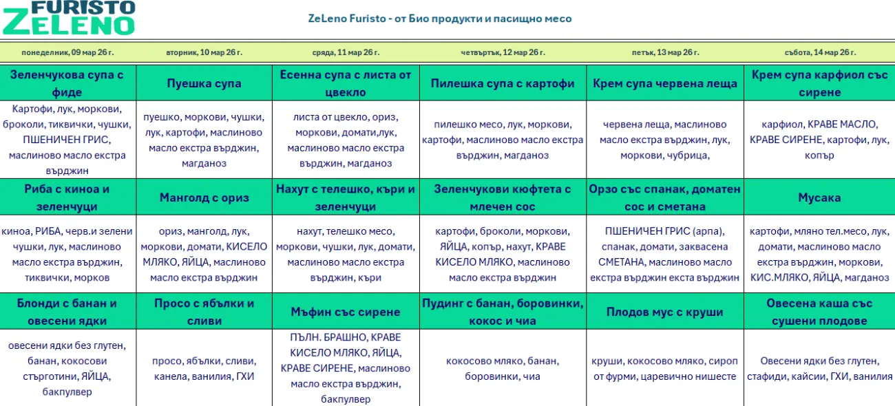 ZeLeno - Нашето био меню с пасищно месо
