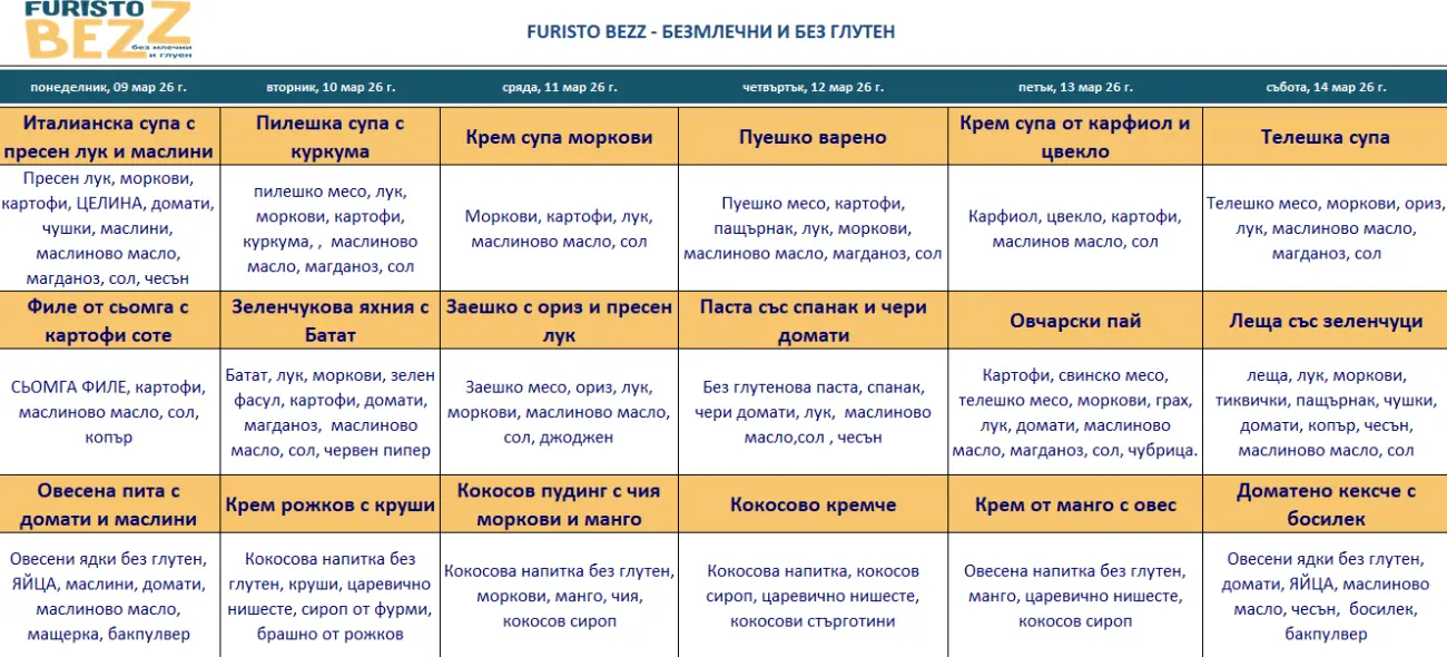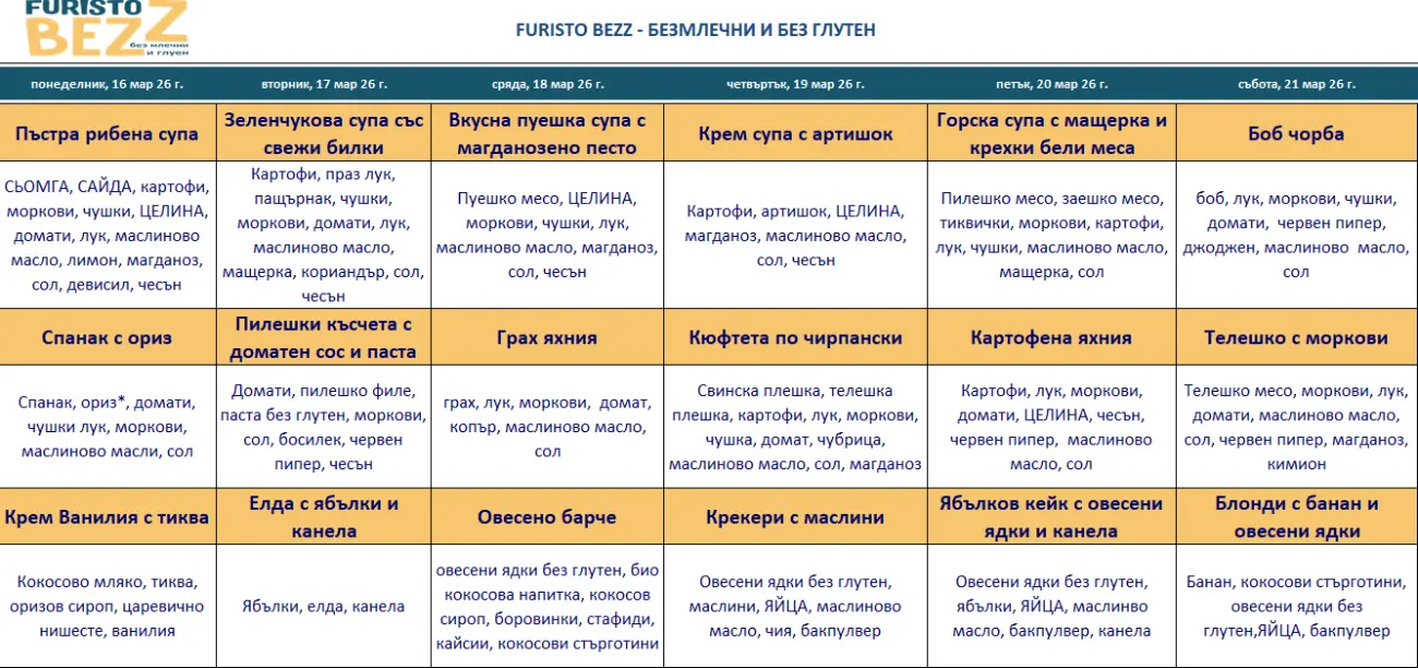 Нашето меню без млечни и глутен*