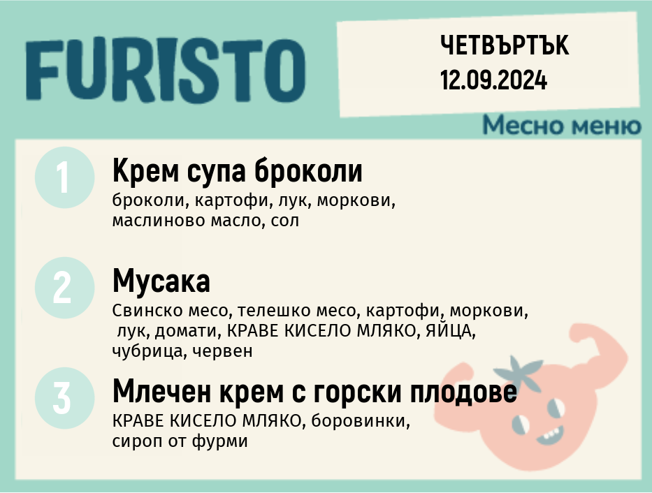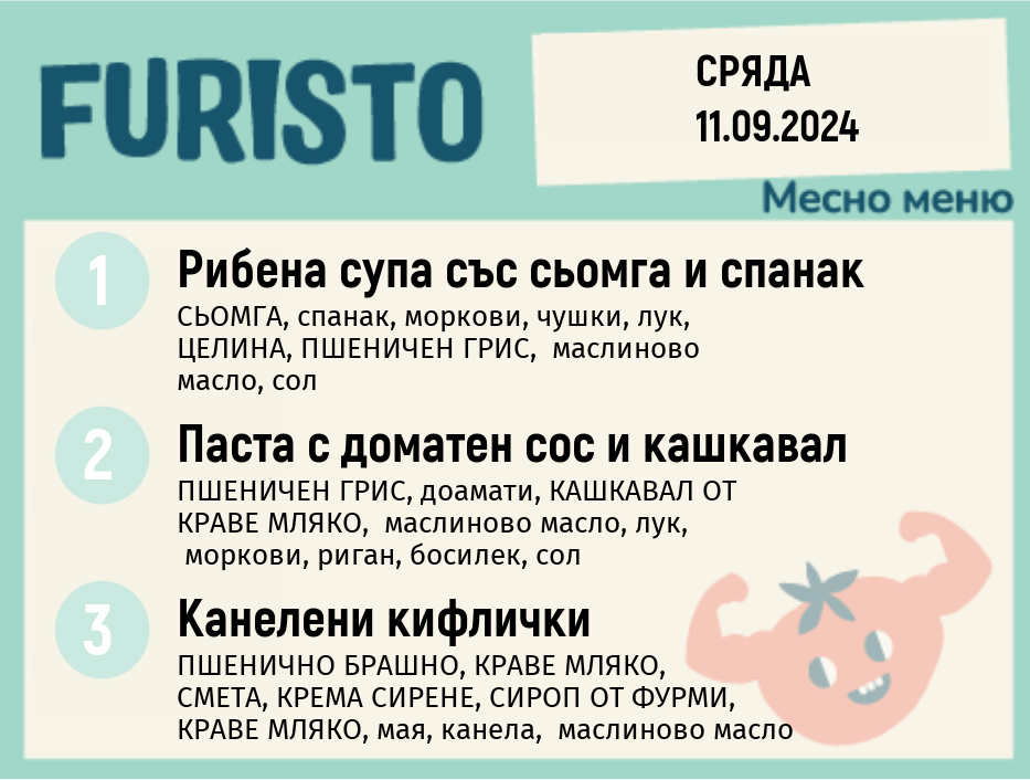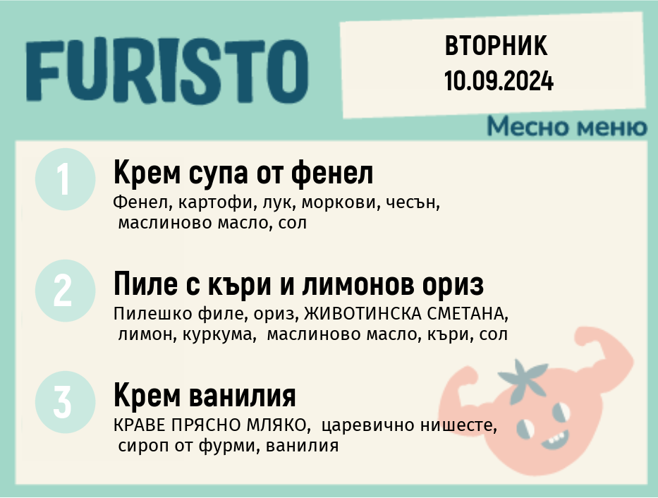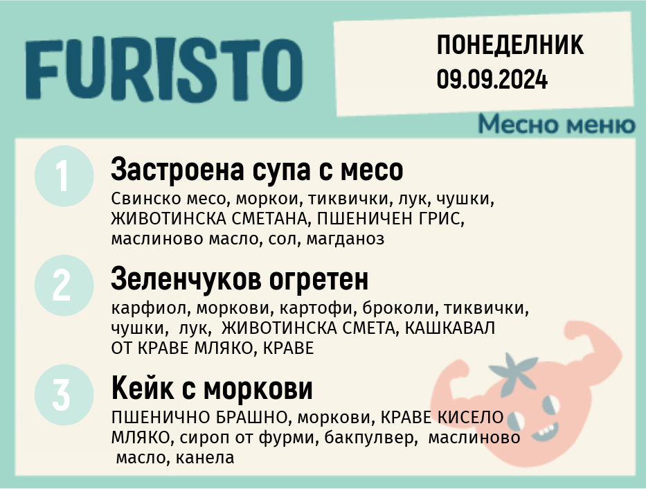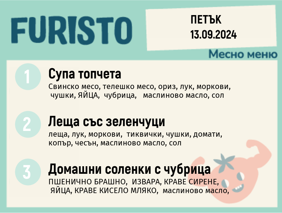 Седмично Furisto меню месно 200гр. 09.09- 13.09