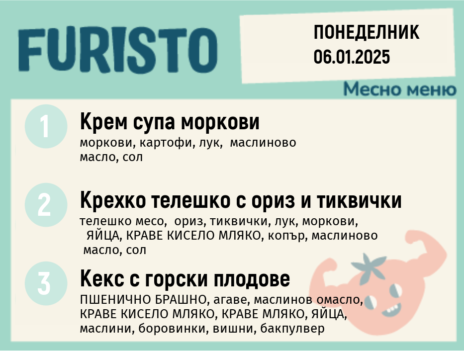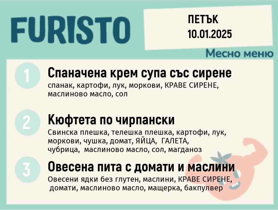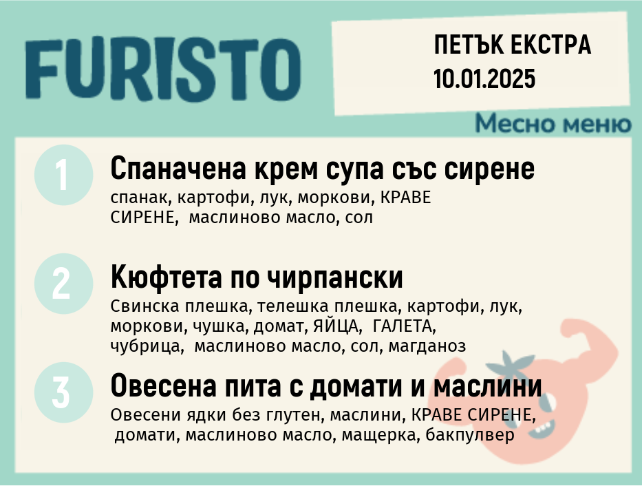 Седмично меню Furisto месно 200гр. (06.01 -10.01)