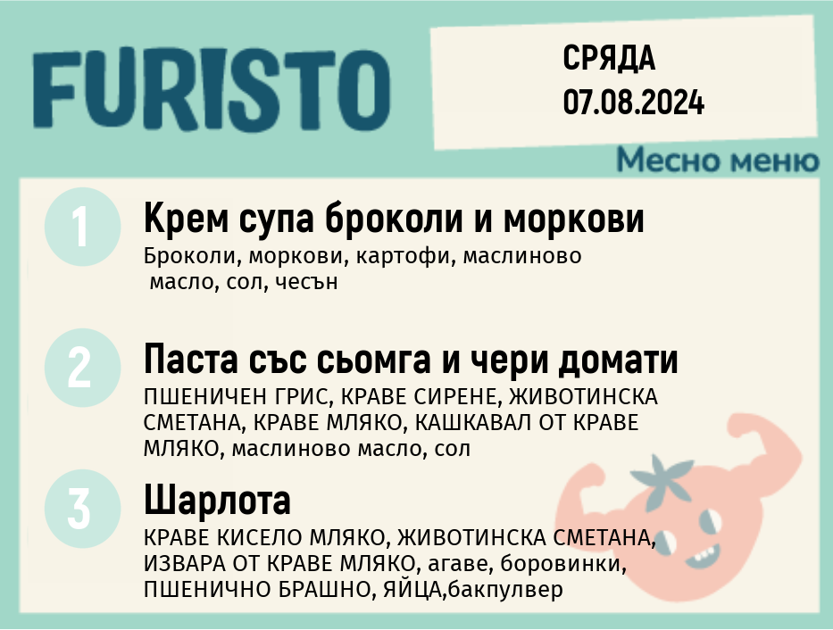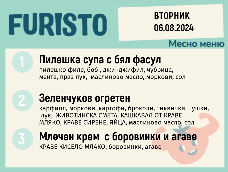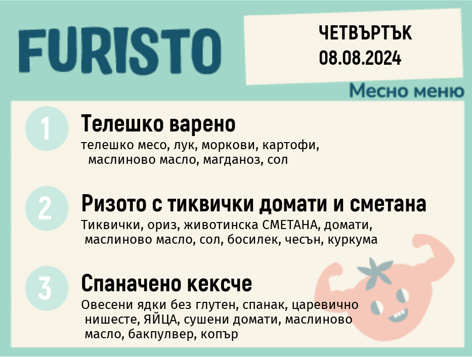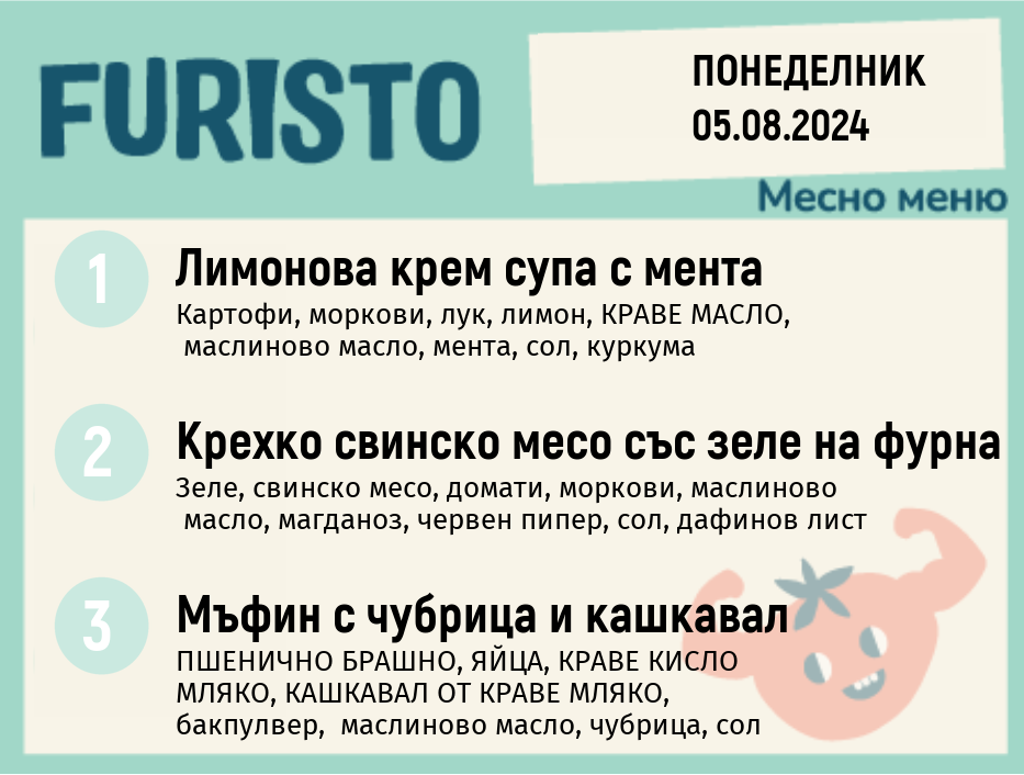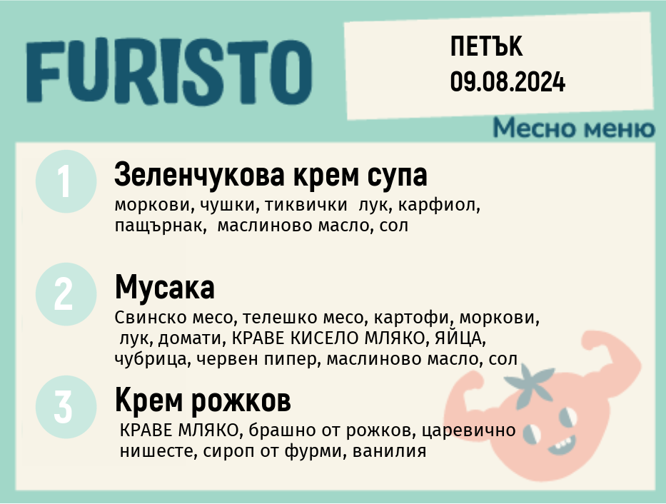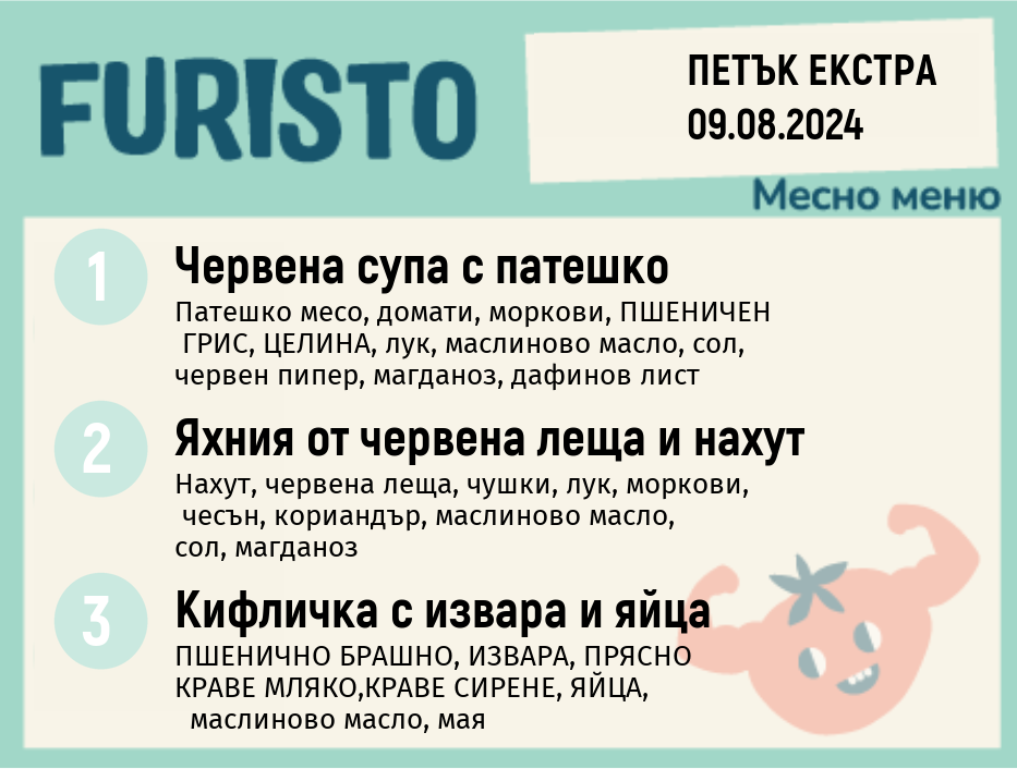 Седмично Furisto меню месно 200гр. 05.08- 09.08