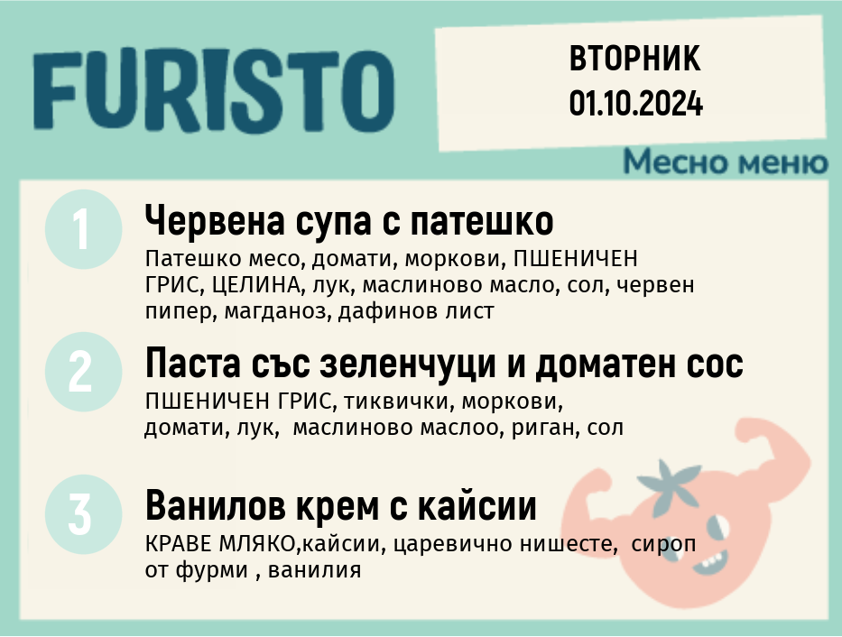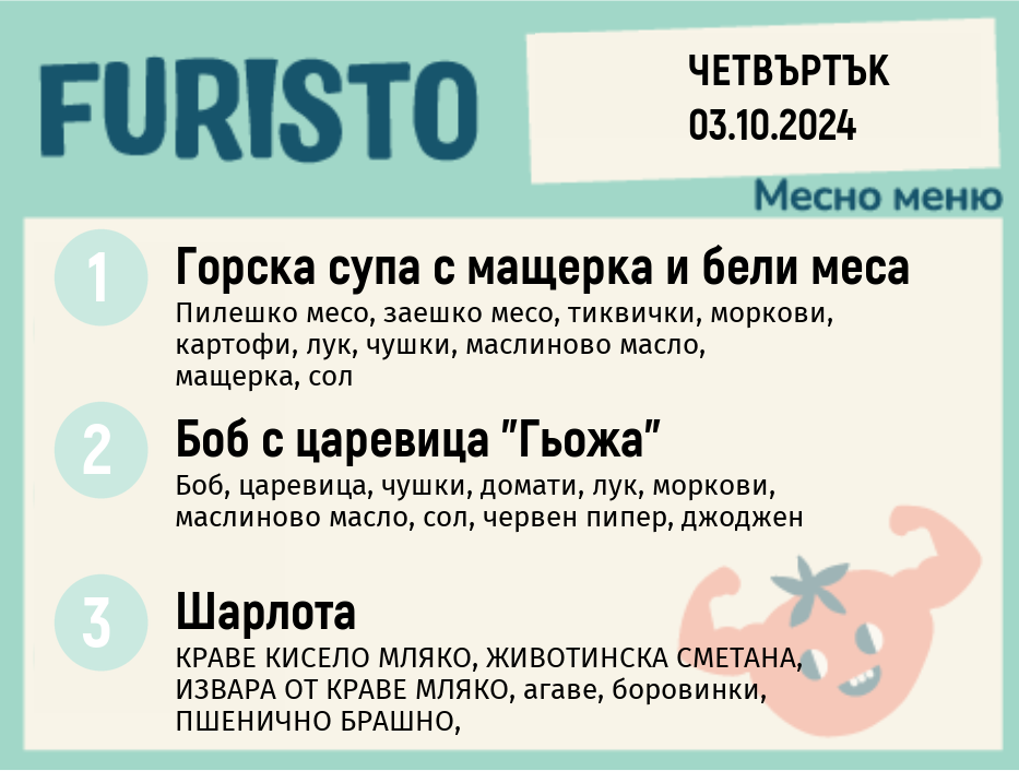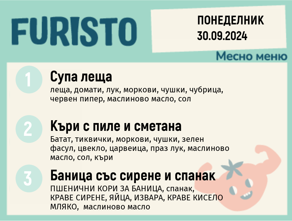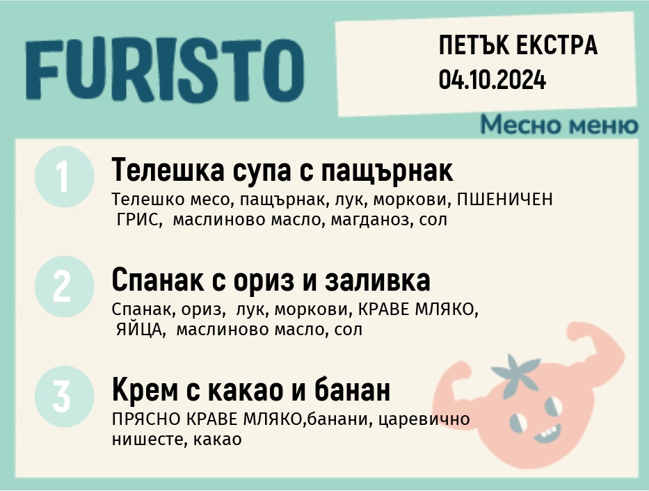 Седмично Furisto меню месно 200гр. 30.09- 04.10